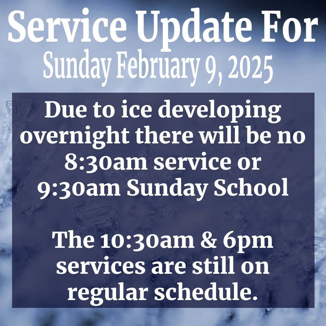 Due to the dropping temperatures and likelihood of icy conditions on the roads, prayer night for Friday Feb. 4 at 7pm is cancelled. Please still take time at 7pm to pray for our church and those who are still sick in our church family as well as the other requests that we have sent out over past days. Stay safe and we will see you on Sunday morning.